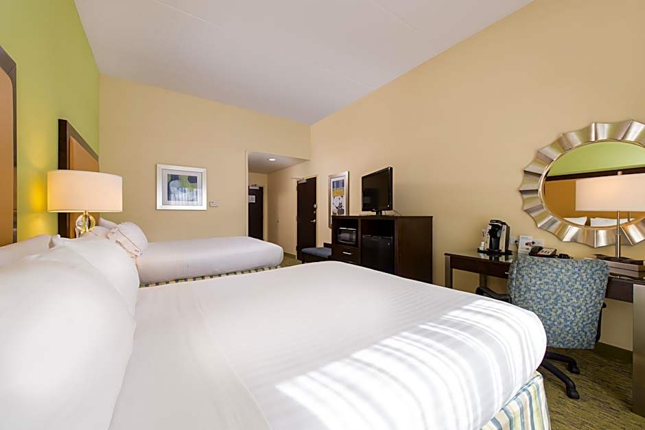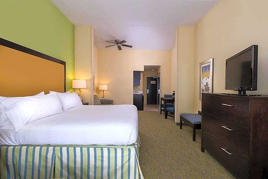 This room features a flat-screen TV, microwave, refrigerator, and coffee-making facilities.